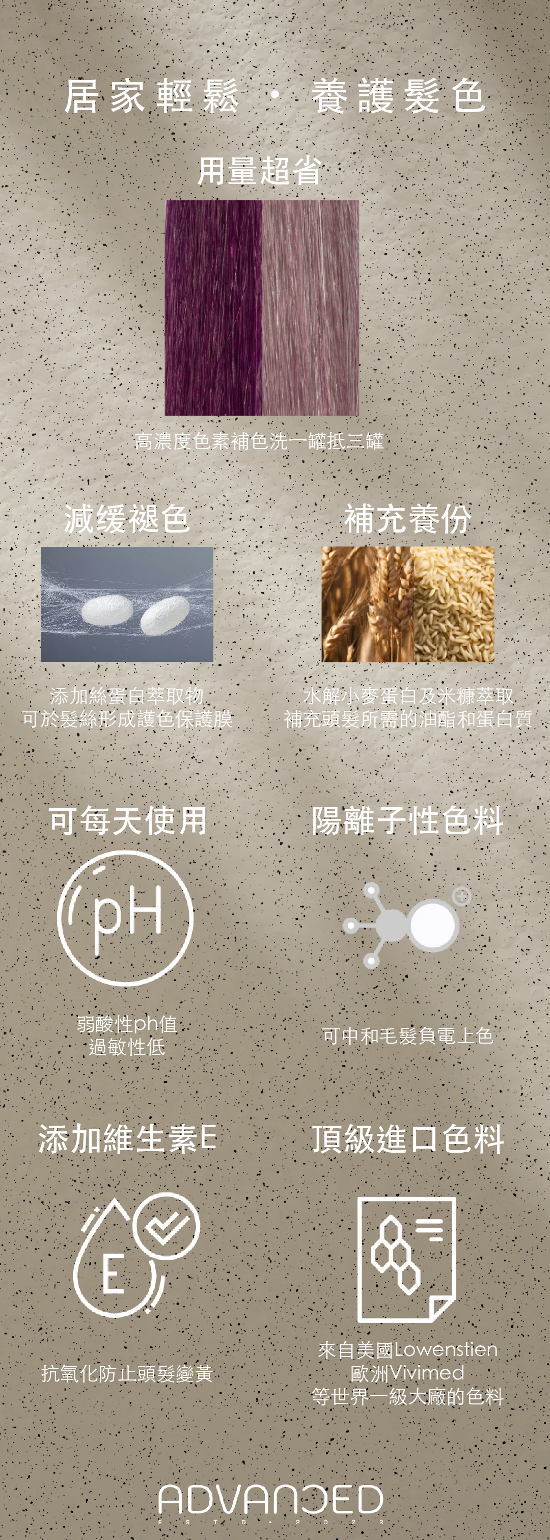 -溫和弱酸性PH值,可以閉鎖毛鱗片,使染後毛髮柔順。